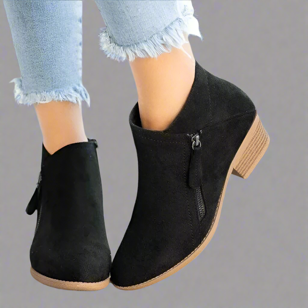 Ontdek ultiem comfort en ondersteuning in een stijlvolle, tijdloze laars. Deze dames enkellaarsjes met orthopedisch design zijn speciaal ontwikkeld om voetpijn te verlichten en je loophouding te verbeteren. Ideaal bij platvoeten, fasciitis plantaris of vermoeide voeten na een lange dag. Het slimme ontwerp met drievoudige voetboogondersteuning verdeelt je lichaamsgewicht gelijkmatig en biedt stabiliteit zonder drukpunten. Dankzij de stevige ritssluiting trek je ze moeiteloos aan en uit, en het lichtgewicht profiel maakt ze perfect voor langdurig gebruik. Of je nu gaat voor een casual look met jeans of een elegante outfit met rok, deze laarsjes zijn een veelzijdige aanvulling op je garderobe.