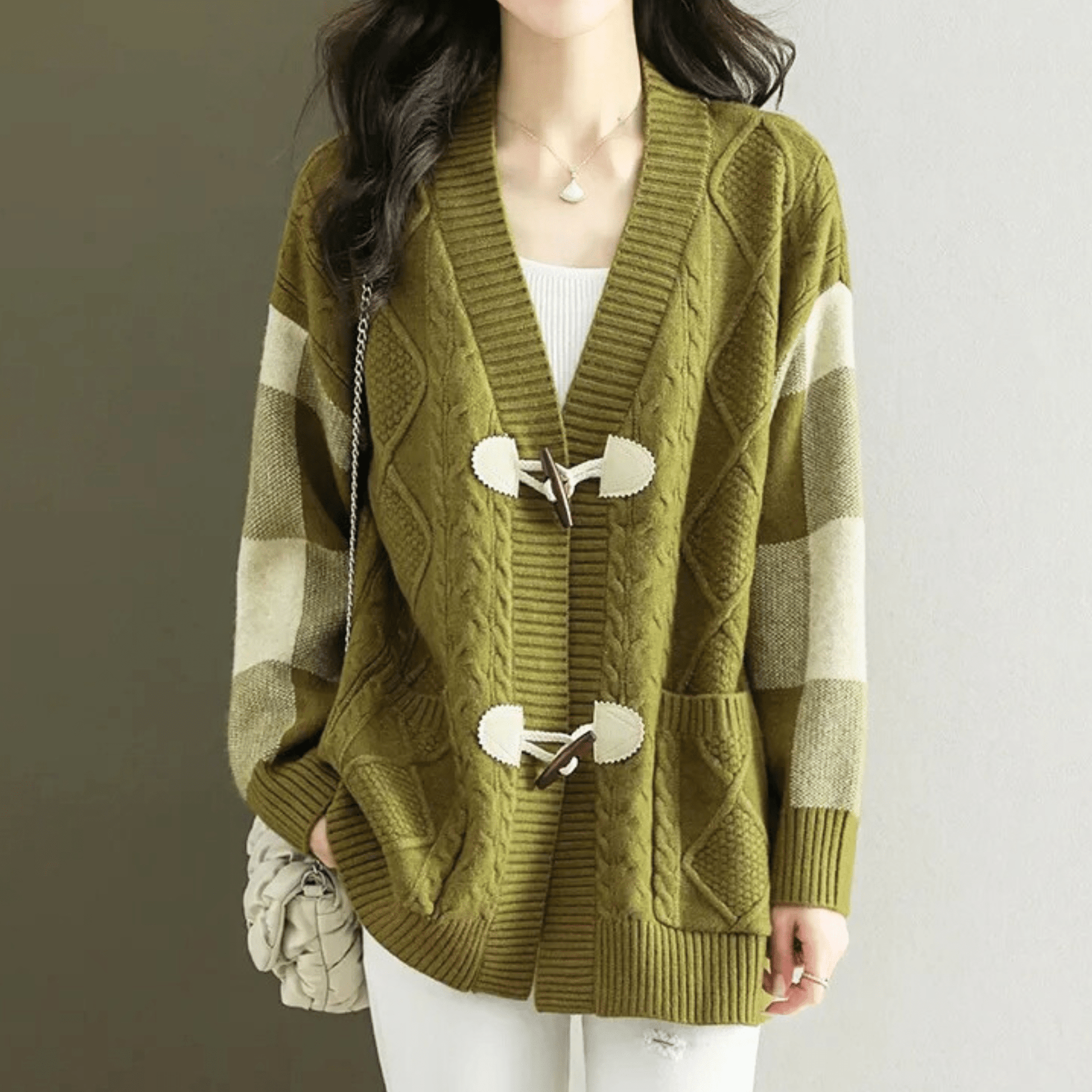 - Het vest heeft een gezellig gebreid ontwerp dat warmte en stijl combineert.